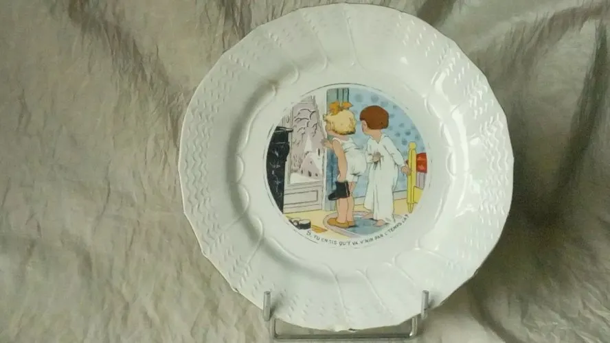 ASSIETTE A DESSERT FAIENCE DE SARREGUEMINES SCENE DENFANT DAPRES BICOT N°7**