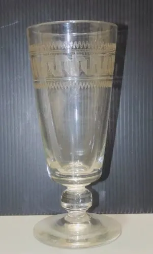 Promo !-JOLI ANCIEN VERRE A ABSINTHE en VERRE à MOTIFS GRAVES A LA GRECQUE VITRINE D