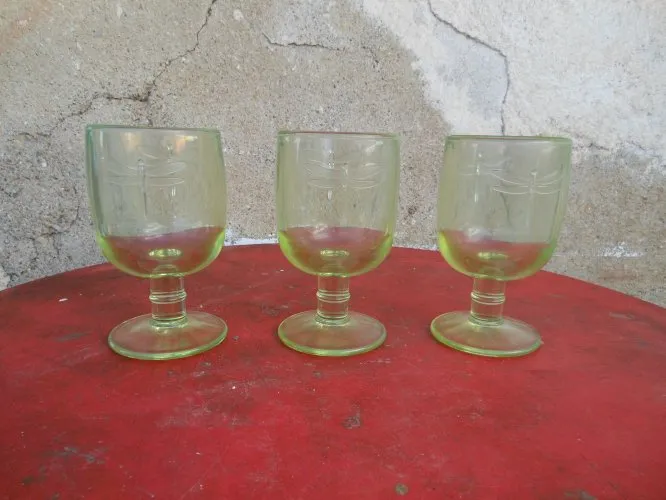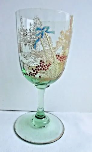 Verre à liqueur émaillé LEGRAS: panier de cerises au ruban bleu sérigraphié Or