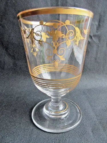 • Verre Charles X forme calice sur piédouche, cristal peint d'entrelacs à l'Or fin