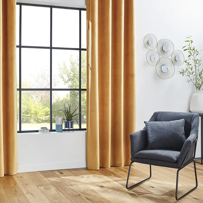 Promo !Rideau occultant velours Otto ocre 140×260 Atmosphera