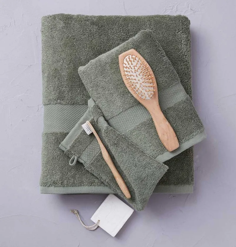 • Lot de 2 serviettes de toilette coton peigné 600g/m² vert vétiver