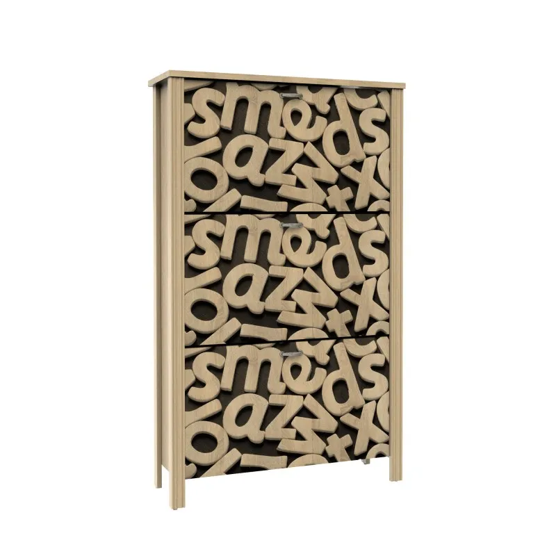 • lettres meuble à chaussures 3 portes 134,5x81x27,5cm.