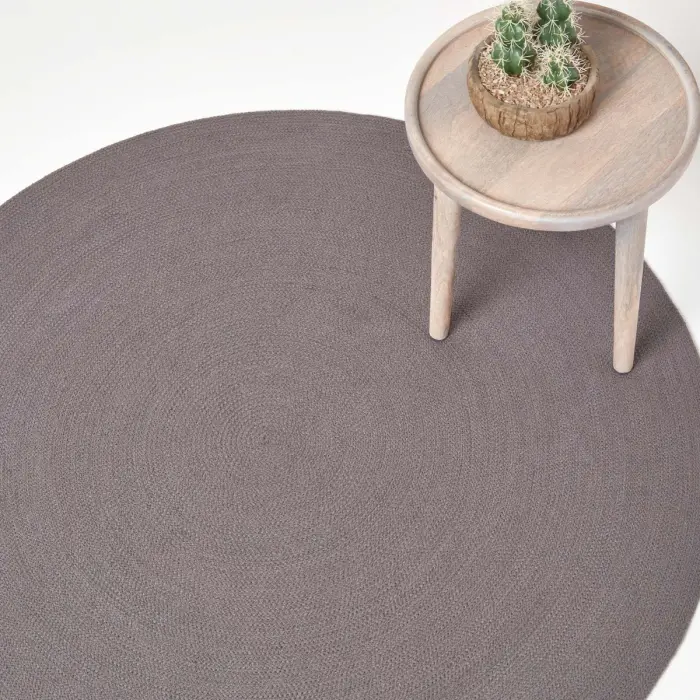 Tapis rond tissé à plat en coton Gris, 150 cm