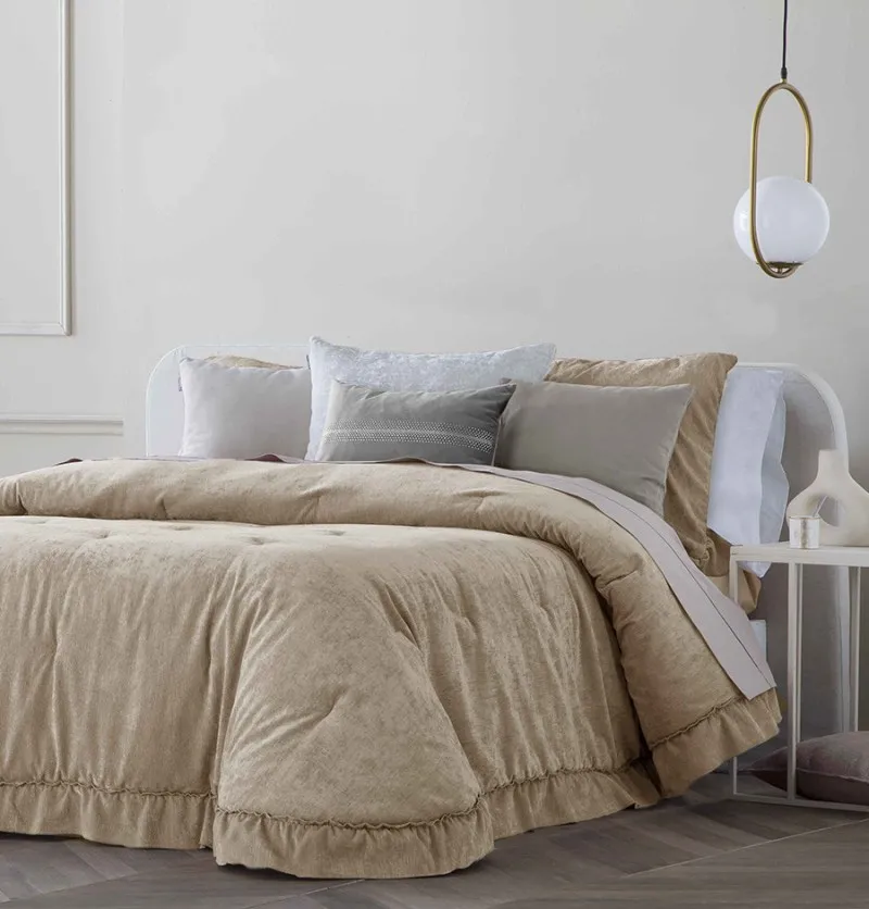 • Couvre-lit velours matelassé Isla sable