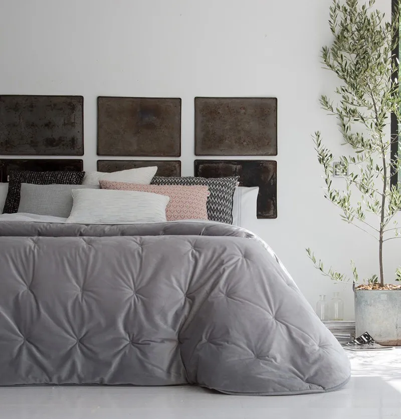 • Couvre-lit velours matelassé Jess gris