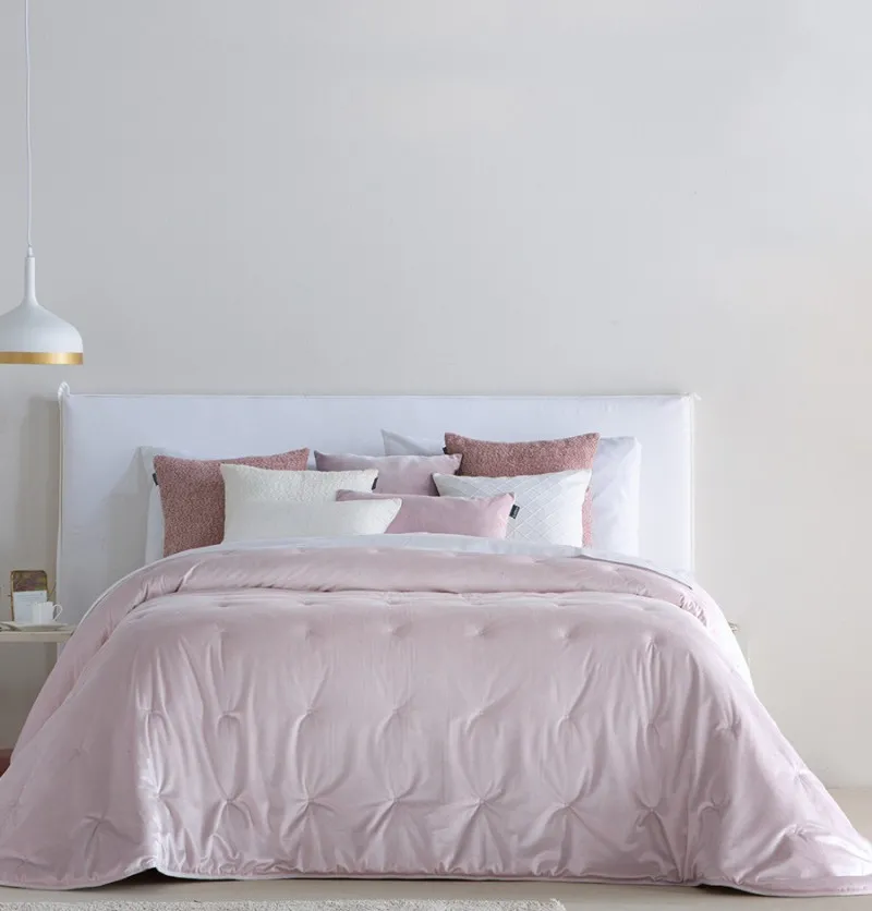 Couvre-lit velours matelassé Odin rose pâle