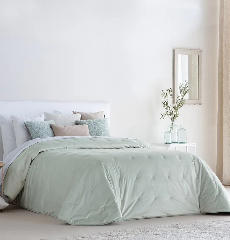• Couvre-lit velours matelassé Jess vert d'eau