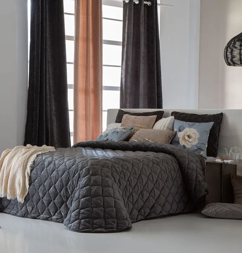 • Couvre-lit velours matelassé Siena anthracite
