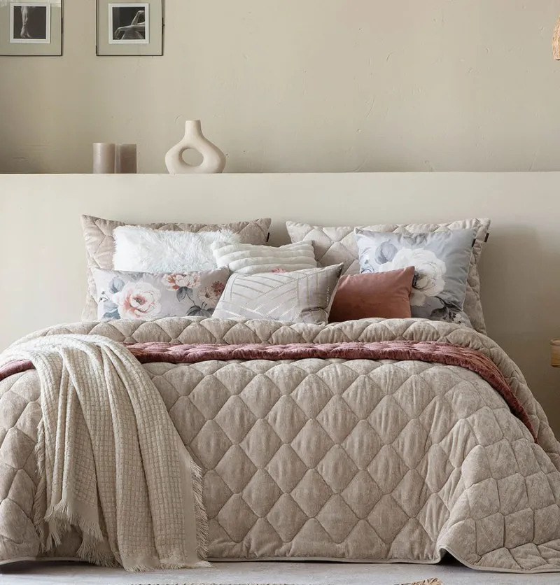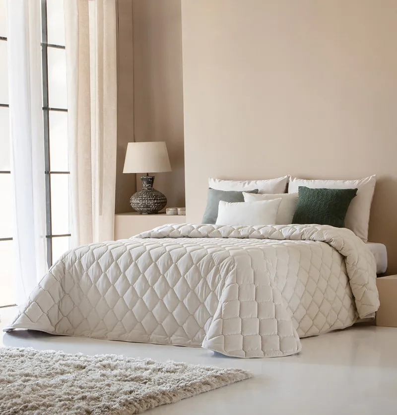 Promo !Couvre-lit velours matelassé Tivoli beige clair