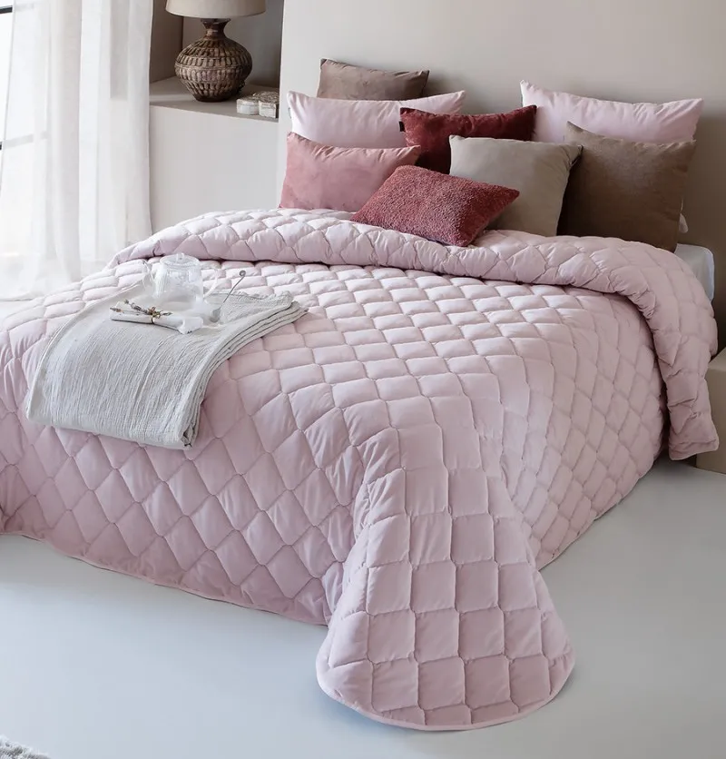 Promo !Couvre-lit velours matelassé Tivoli rose pâle
