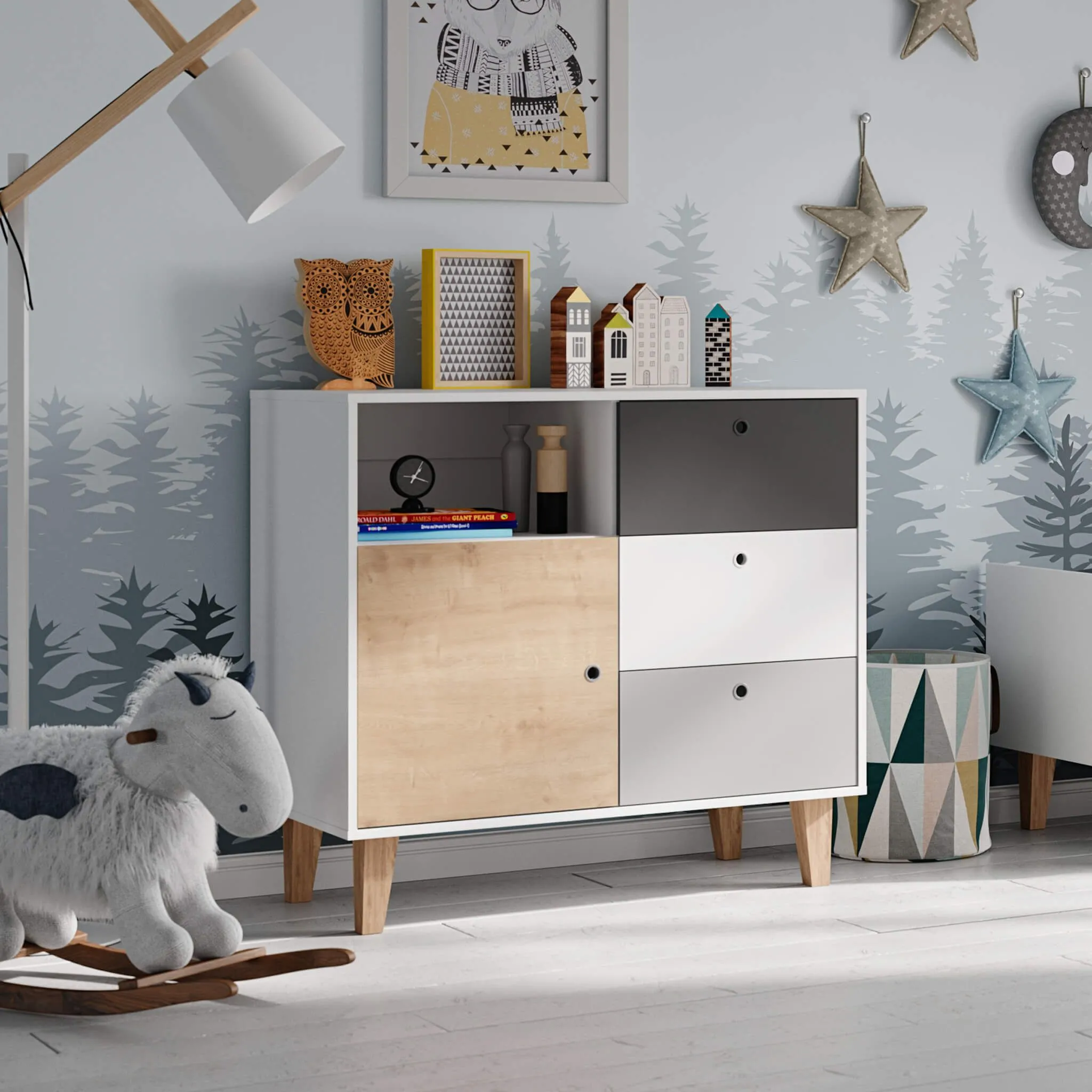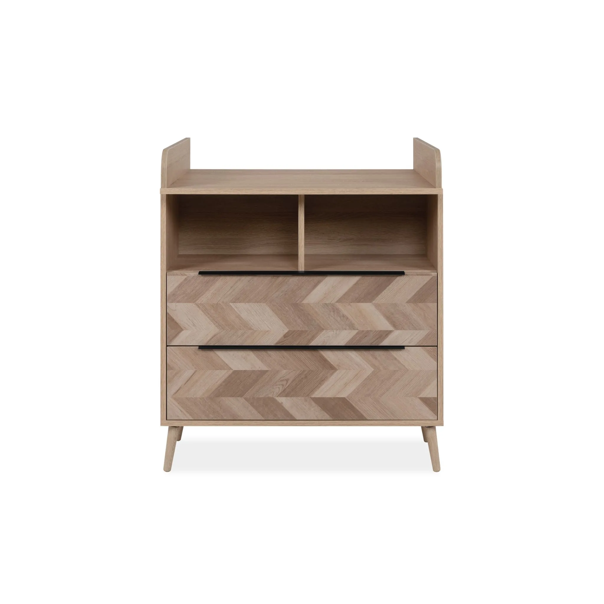 Commode à langer bébé 2 tiroirs 2 niches en bois naturel impression chevron – CO70107