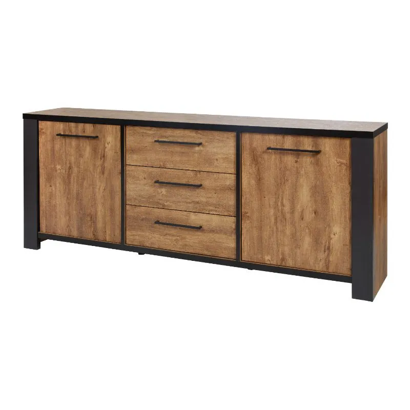 Promo !Buffet 2 portes 3 tiroirs 230 cm coloris denver oak Smith
