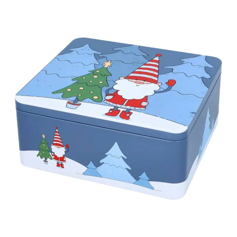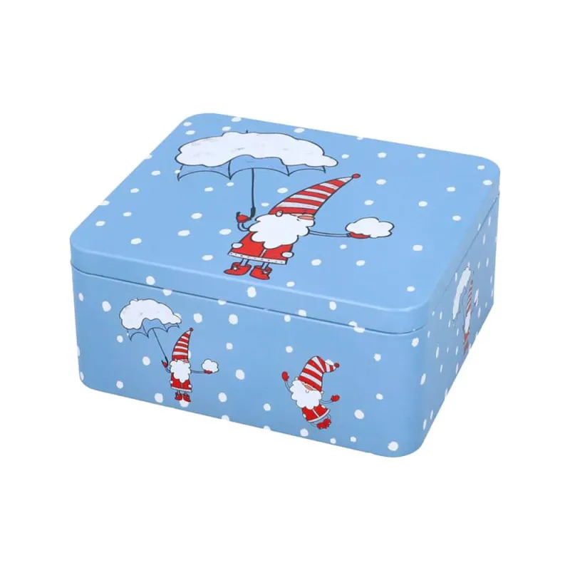 Promo !Boite à biscuits de Noël rectangulaire Moyenne – Décor Lutin de Noël – 18 cm