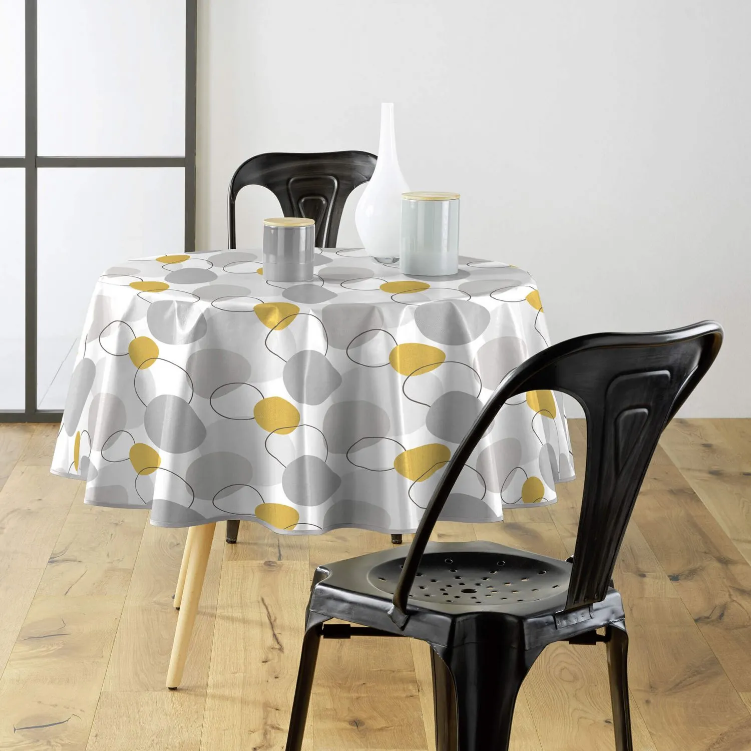 Promo !Toile cirée ronde – Diamètre 160 cm – Rond doré et gris