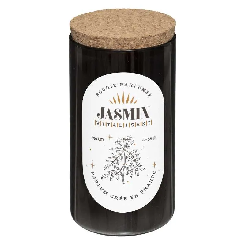 Promo !Bougie crépitante parfumée Jasmin avec mèche en bois, 230g