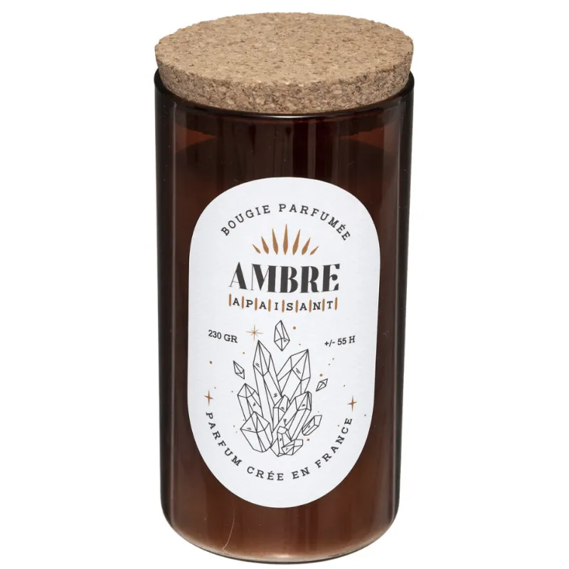 Promo !Bougie crépitante parfumée Ambre avec mèche en bois, 230g