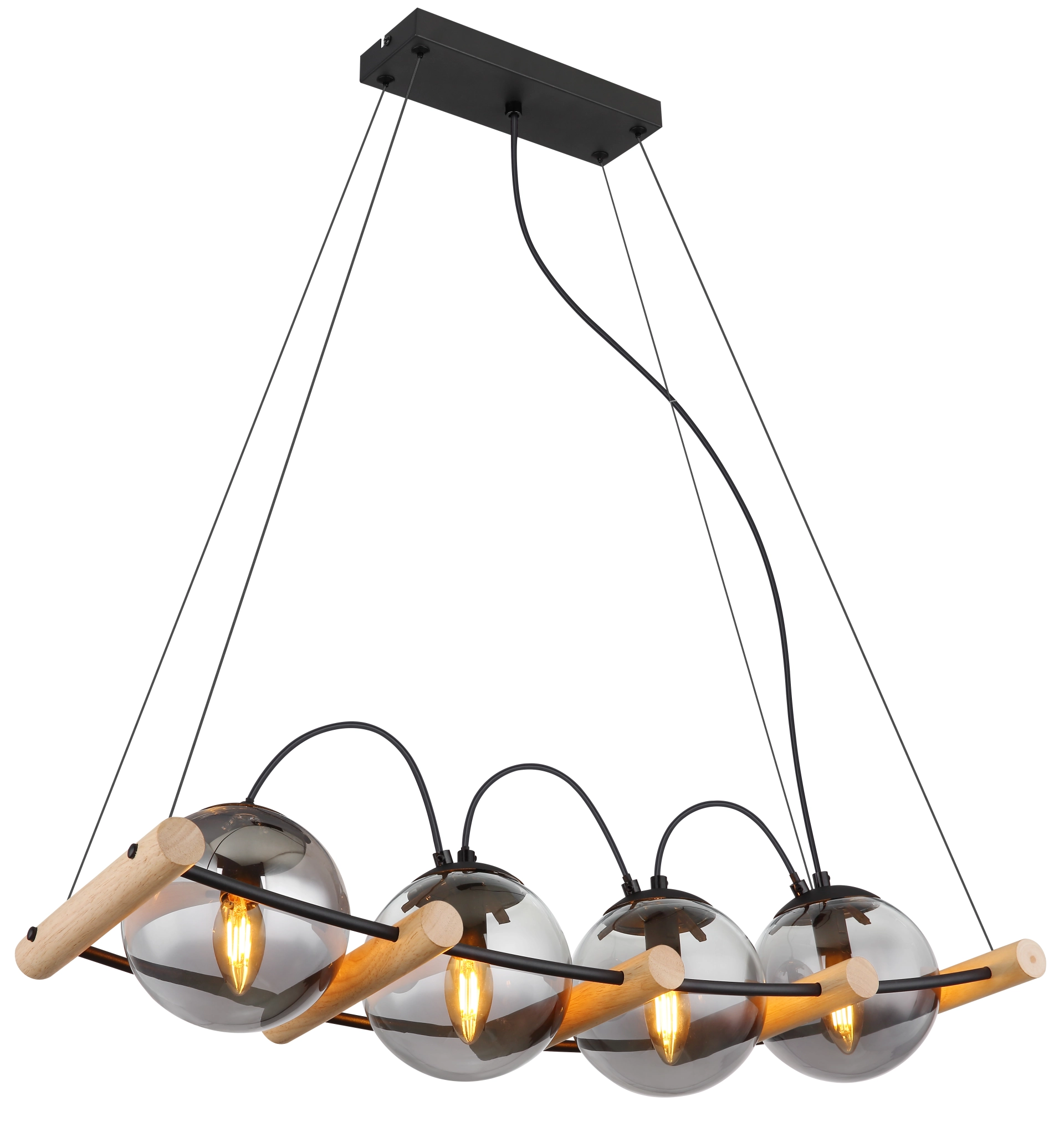 • suspension - métal noir mat - verre fumé - 15883-4H