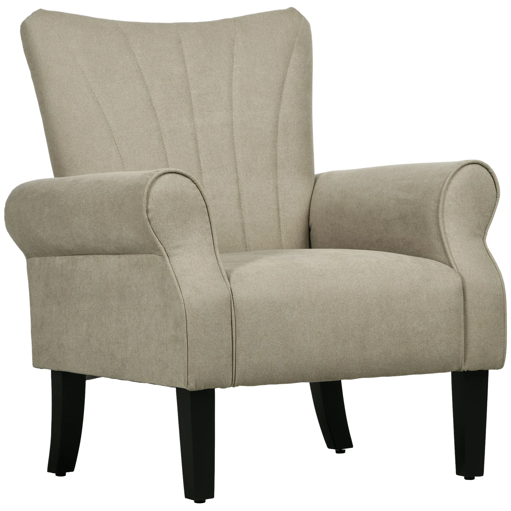 Promo !Accent Chair Upholstered High Back Rolled Arms Wood Legs Soft Thick Padded Armchair Beige