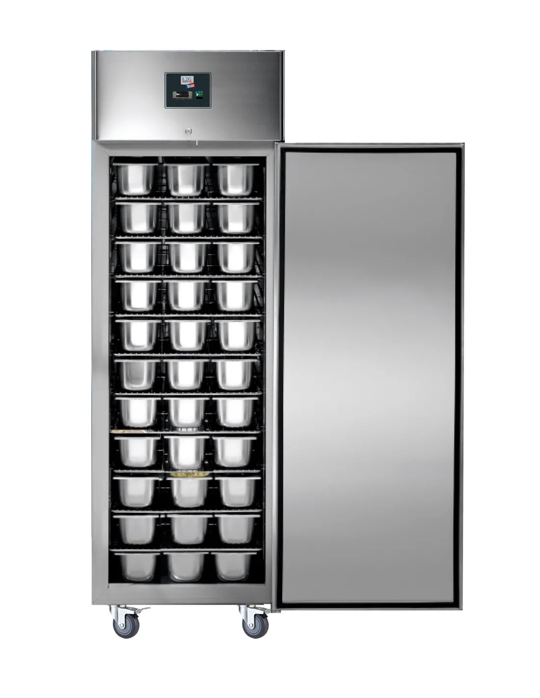 ARMOIRE PATISSIERE 800L. 600X800MM. 1 PORTE FROID VENTILE -18/-22°C. ROULETTES D.100 MM L (en mm) : 740 – P (en mm) : 990 H (en
