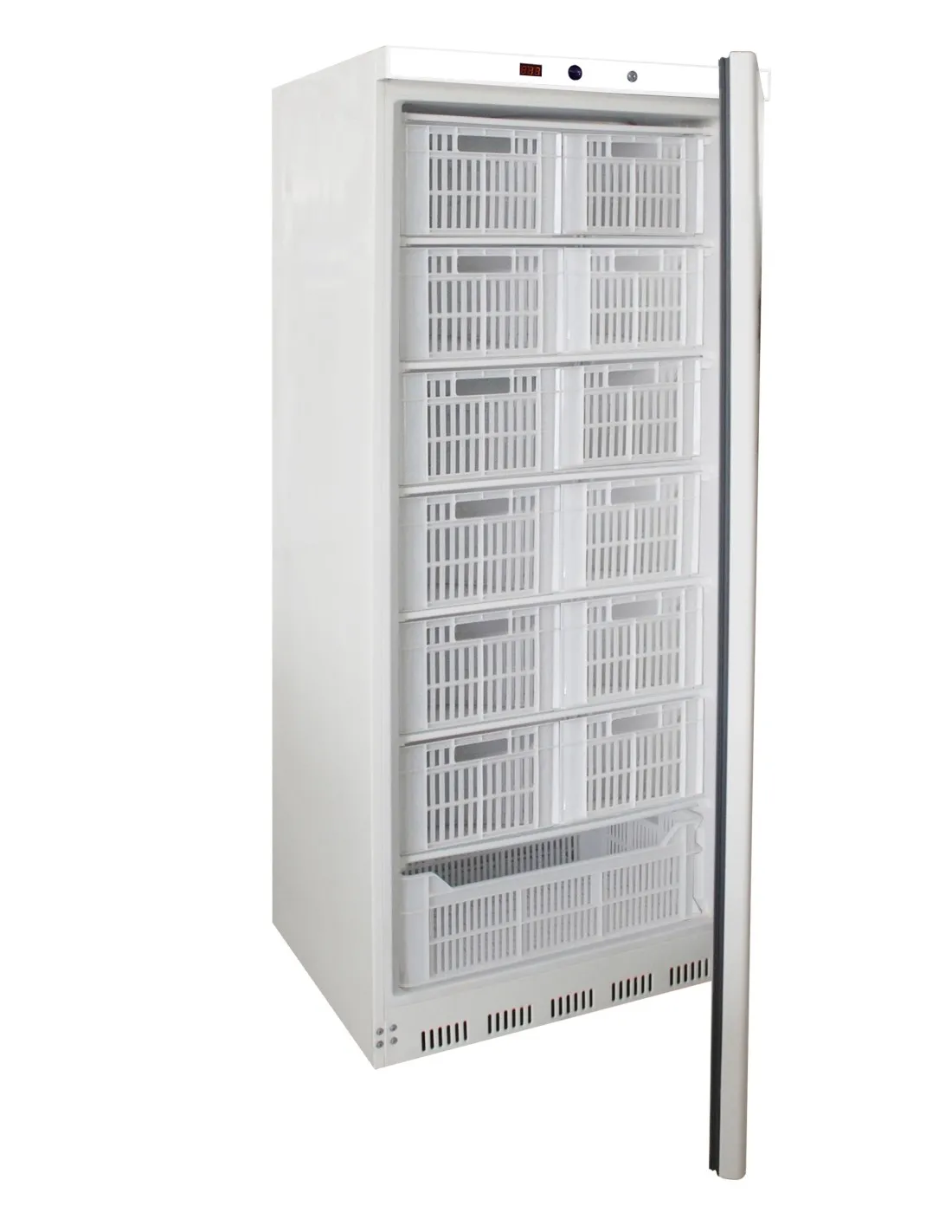 • ARMOIRE REFRIGEREE BLANCHE. -18/-24°C AVEC 7 CLAYETTES EQUIPEES DE 13 PANIERS 310X515X175 MM ET 1 CAGETTE 620X300X185 MM Tension