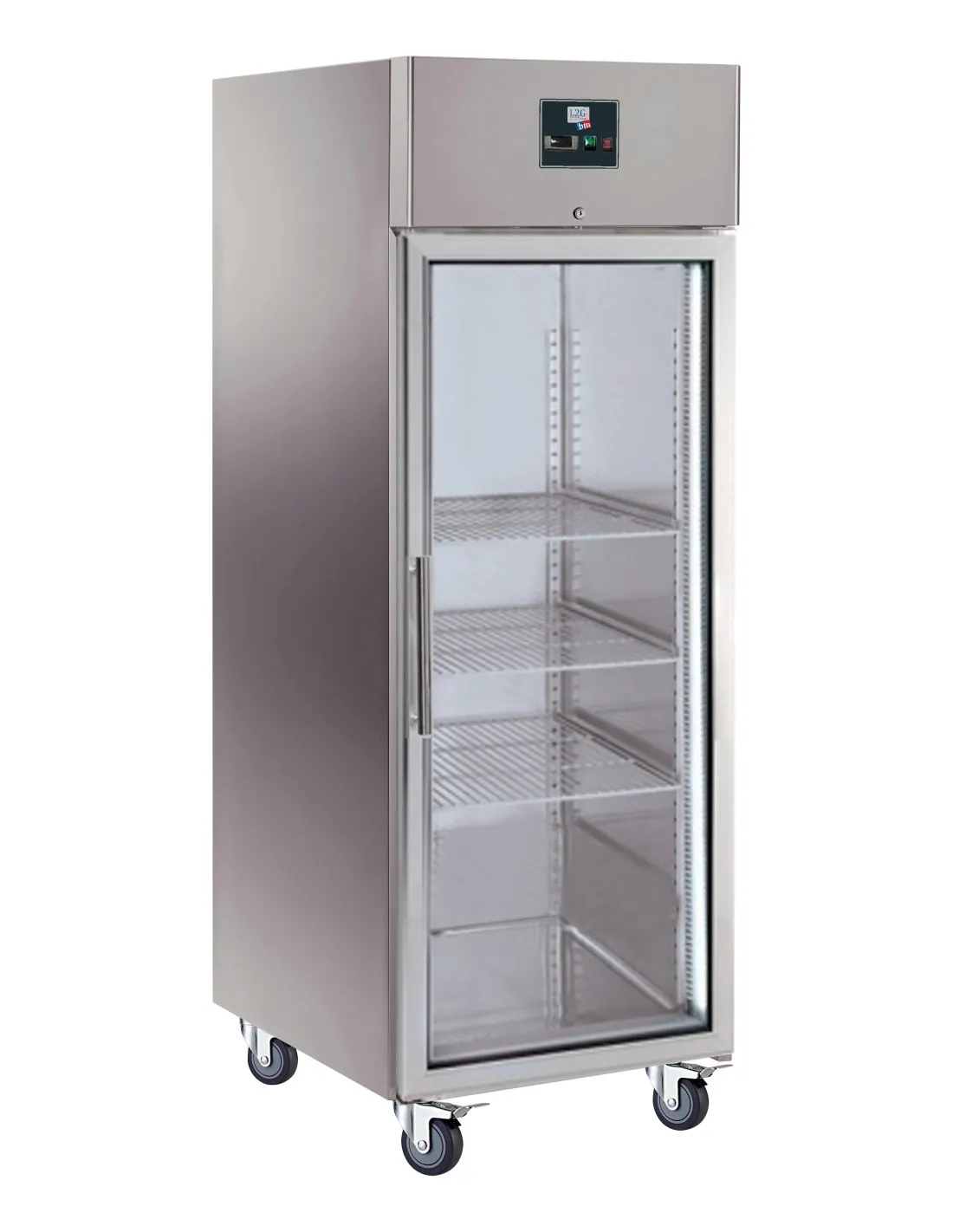 ARMOIRE REFRIGEREE INOX. 1 PORTE VITREE 650 LITRES -2/+8°C. FROID VENTILE. 3 GRILLES GN2/1. Tension : 230V Mono – Puissance (en