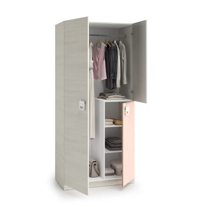 Promo !Armoire 2 portes rose Iris 207x120x558cm