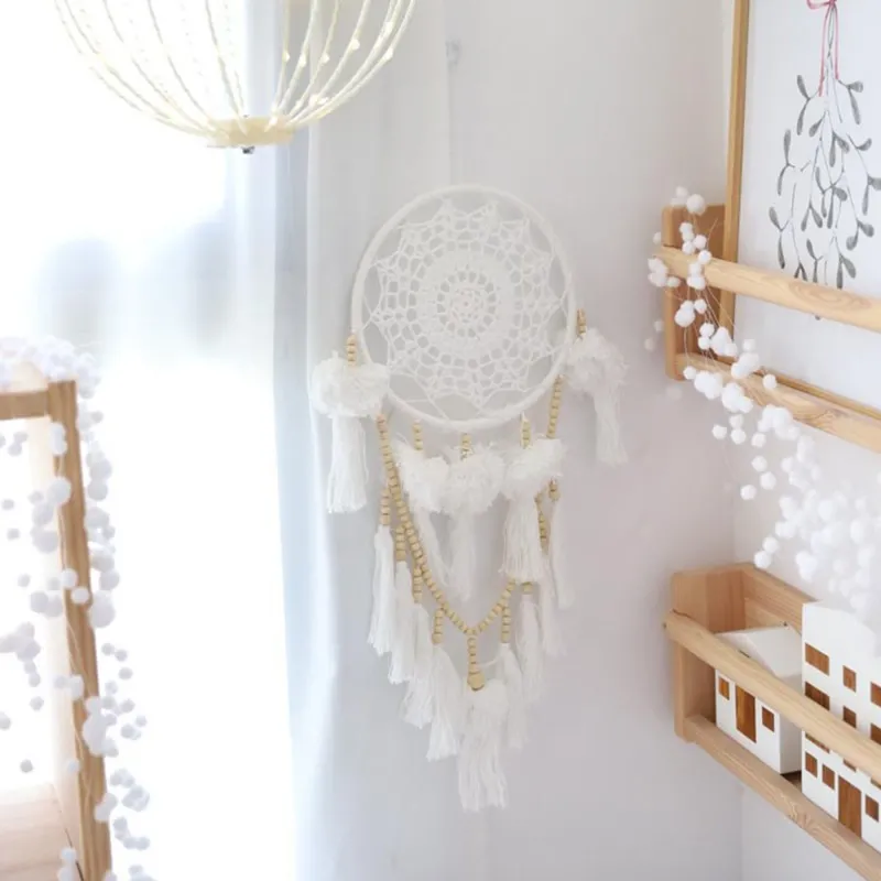 Promo !Attrape-rêves pompons et perles 56x21x2,5 cm