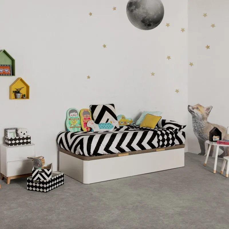 Promo !Lit coffre relevable latéral d’aggloméré blanc Nemo 90/105x190cm