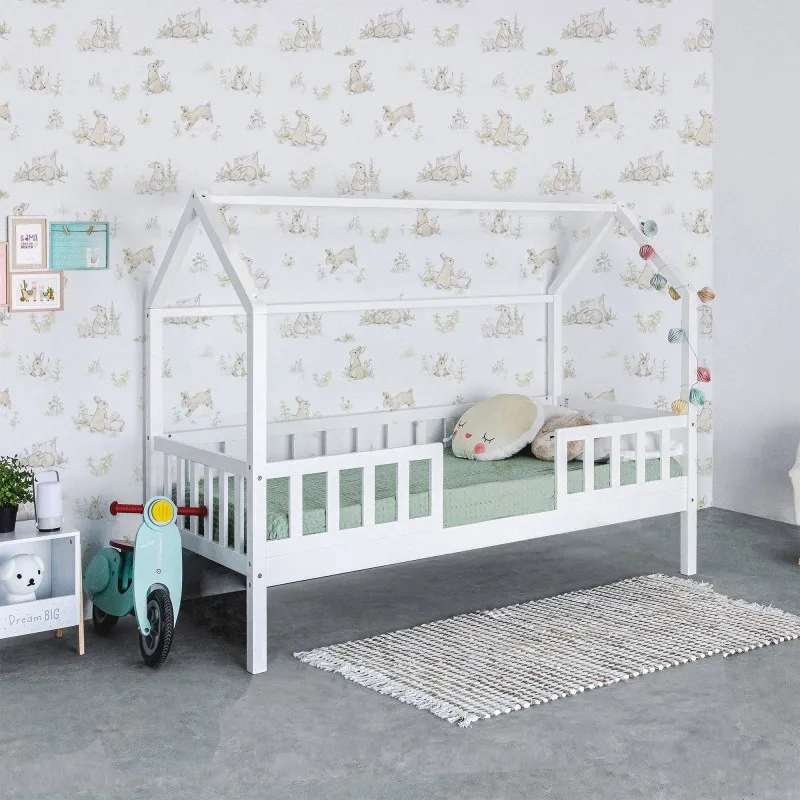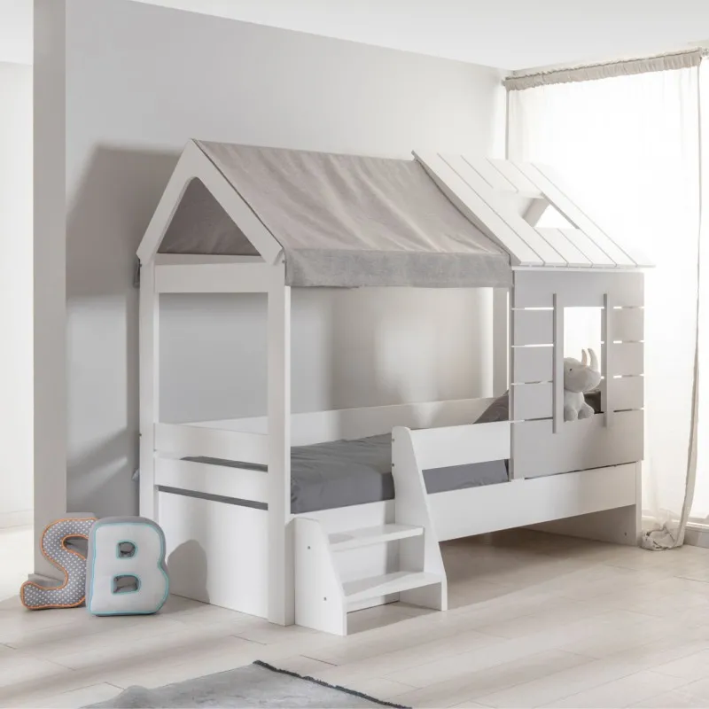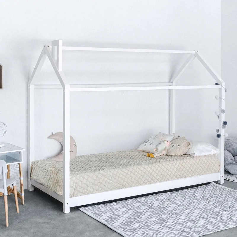 Promo !Lit d’enfant Montessori cabane blanc Iris 90x200cm
