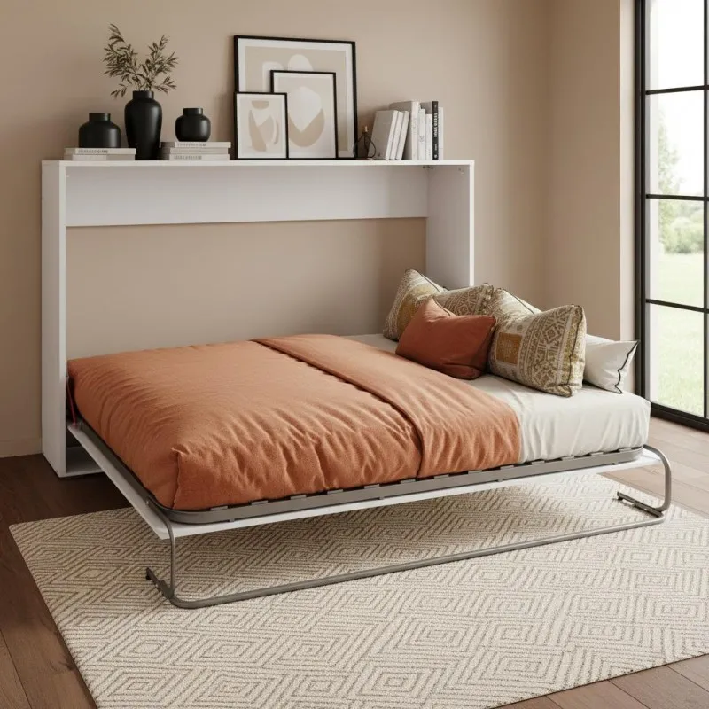 Promo !Lit escamotable aggloméré mélamine blanc Elsa 135x190cm