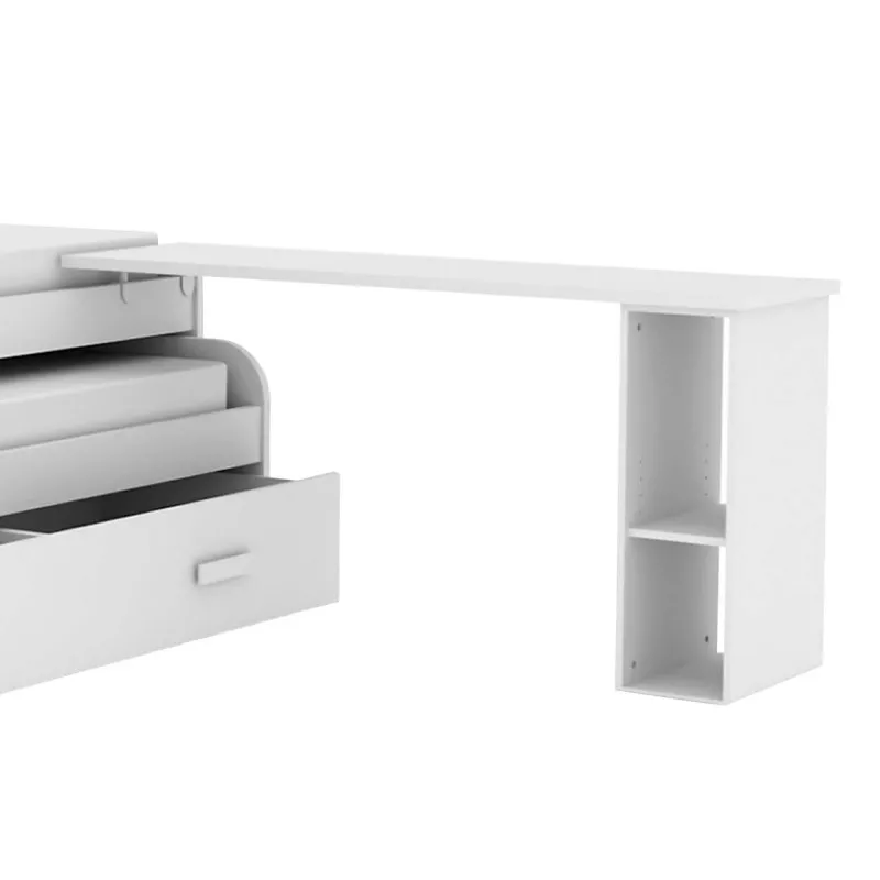 Promo !Bureau avec support de lit gigogne et étagères Giulia 76,5×150/202/242×45