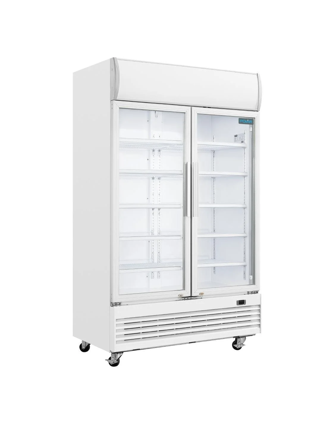 Promo !Armoire réfrigérée 2 portes vitrées à charnières avec caisson lumineux Polar Série G 950L