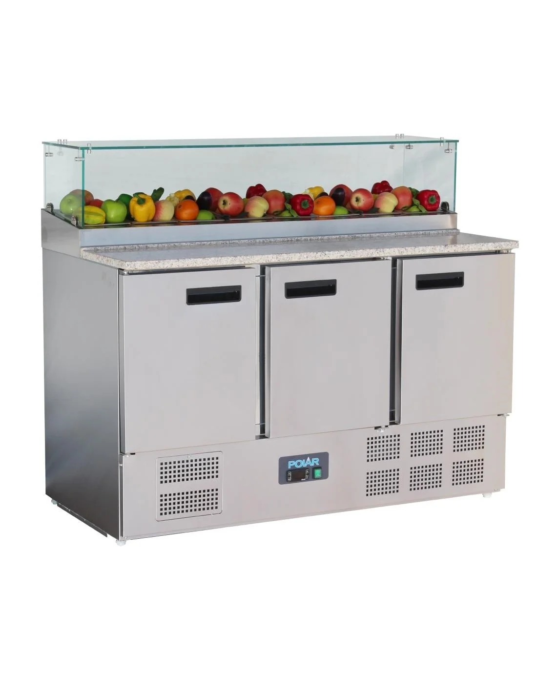 Comptoir à pizza 3 portes avec pare-haleine vitré Polar Série-G 436L
