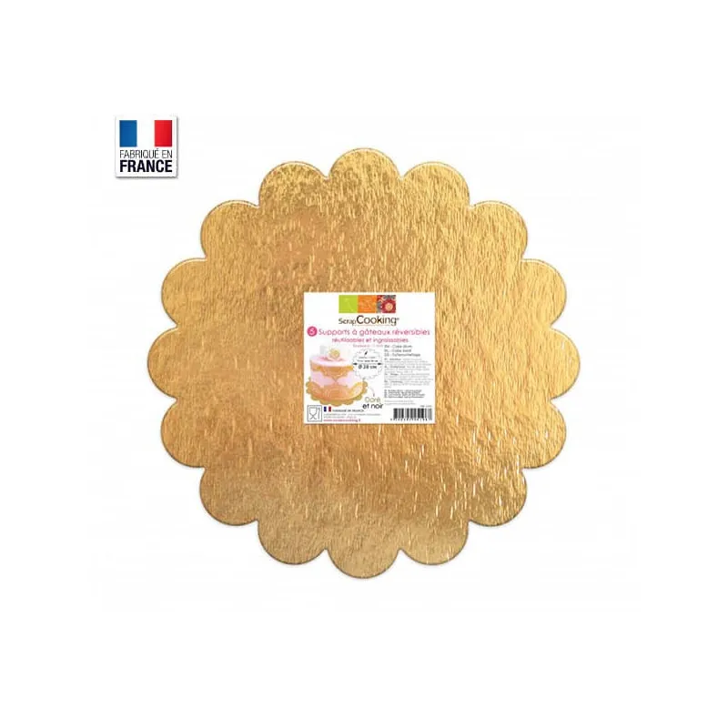 • Supports à gâteaux or / noir ronds cannelés - lot de 5