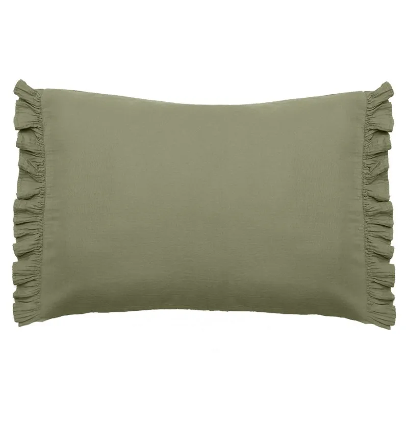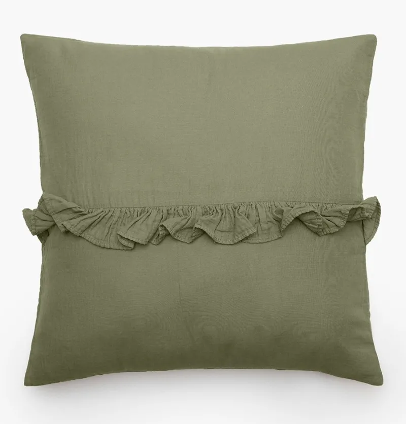 Lot de 2 housses coussins Elsa lichen – deux volants