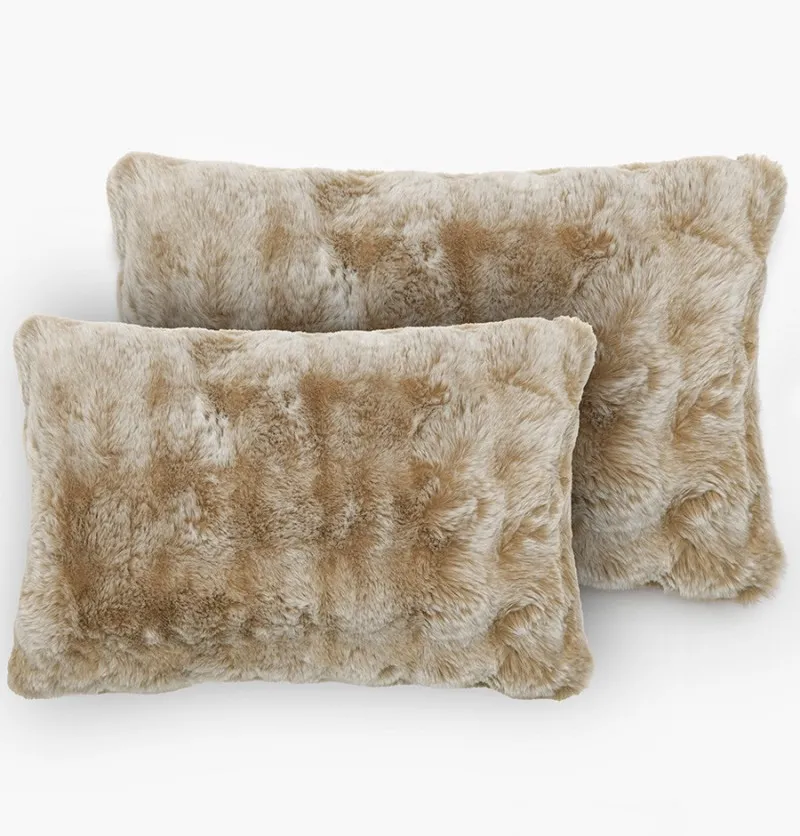 • Lot de 2 housses coussins fausse fourrure Astrakan camel
