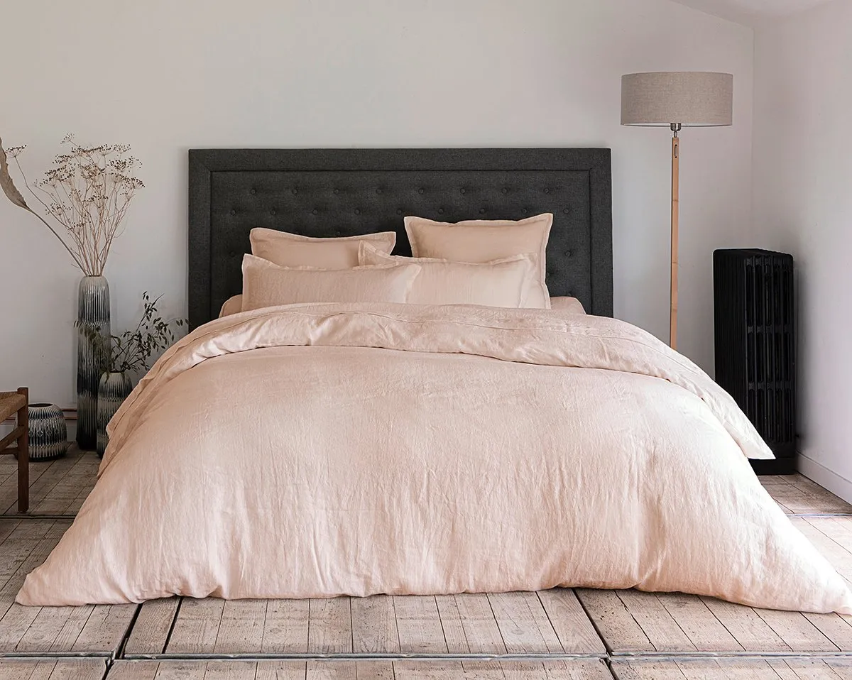 En version noire, la housse de couette Amance en percale de coton peigné apporte une touche de luxe et de modernité à la chambre.