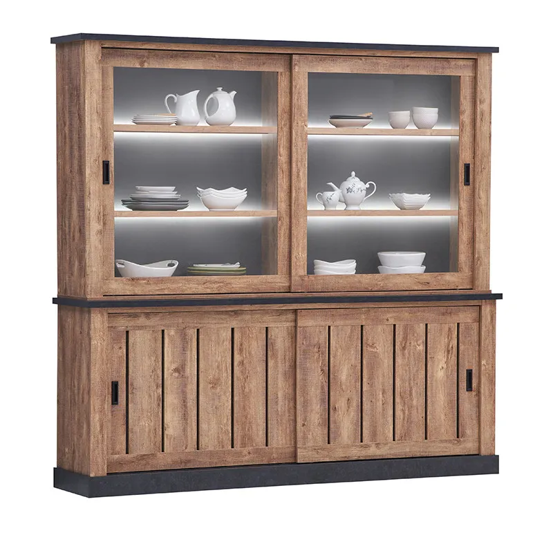 La vitrine 2+2 portes coulissantes Edouard est un choix pratique et élégant pour votre salle à manger ou votre salon.